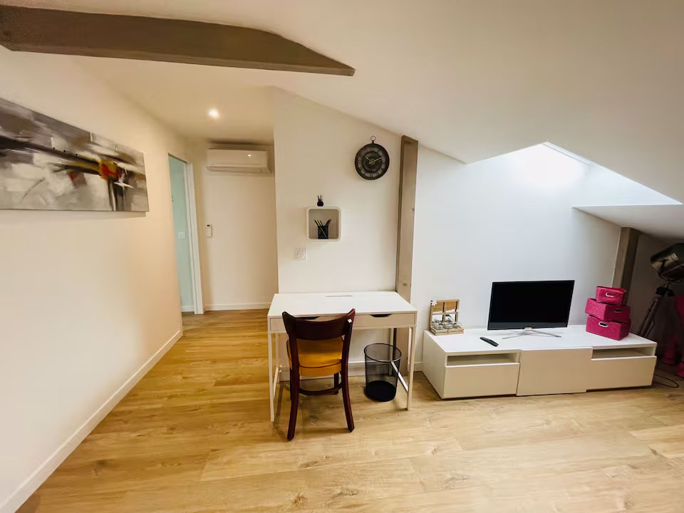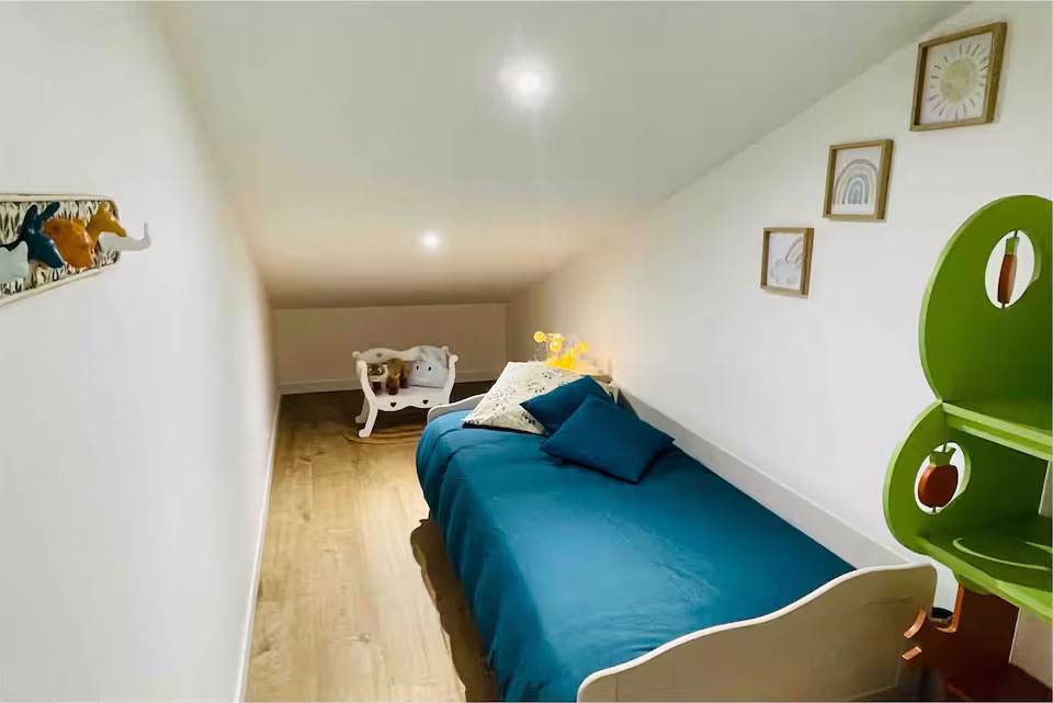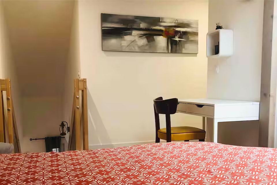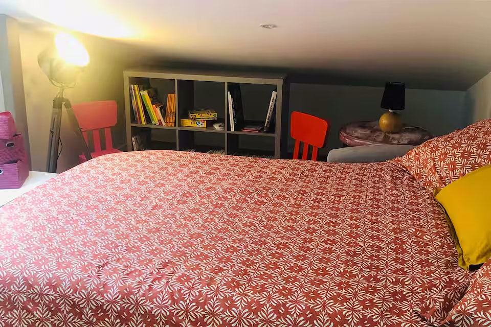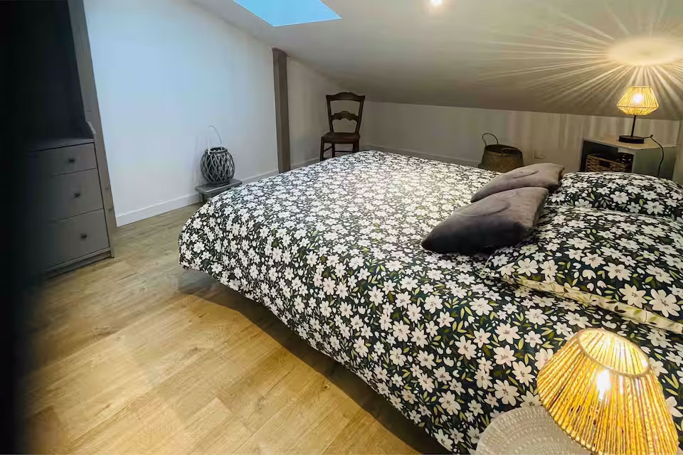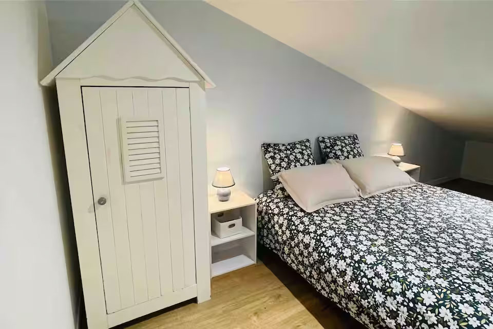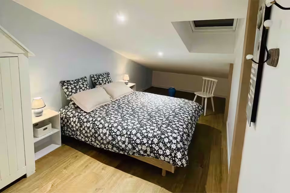 Les chambres mansardées offrent une ambiance cocooning et apaisante. Des lits confortables et 2 salles d’eau modernes garantissent un séjour agréable. L’appartement est équipé d’une grande télévision connectée et d’une connexion Wi-Fi.